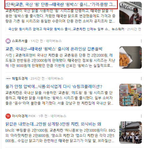 교촌 측은 "윙 단품 메뉴만 태국산으로 변경했고, 콤보 메뉴는 여전히 국산을 사용한다"고 해명했습니다.