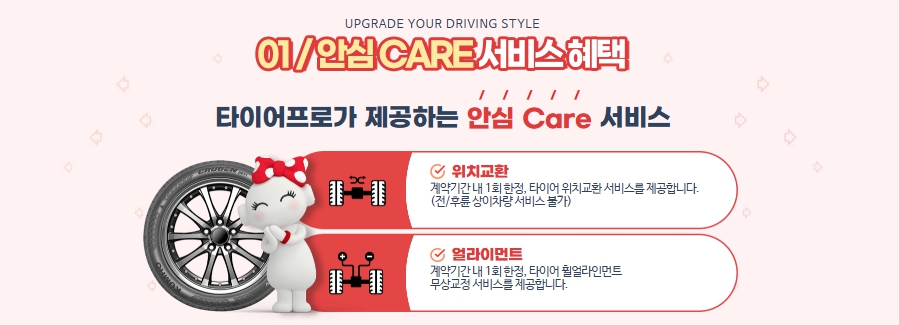 - 장바구니 Care: 타이어 파손 시 1+1 교체 혜택 포함