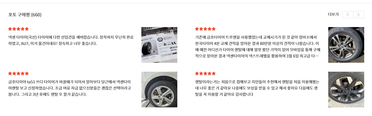 많은 운전자들이 넥센타이어 렌탈 서비스를 이용하고 만족감을 표하고 있습니다. 다음은 실제 사용자들의 후기입니다.