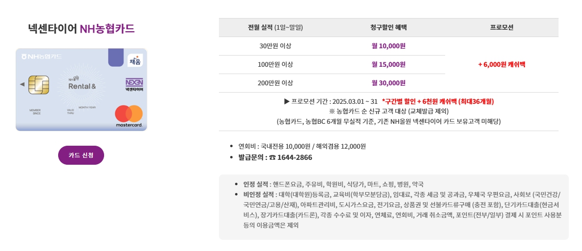 - NH농협카드: 추가 캐시백 혜택 제공 (최대 6,000원)