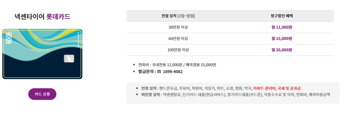 - 롯데카드: 전월 실적에 따라 최대 월 20,000원 할인