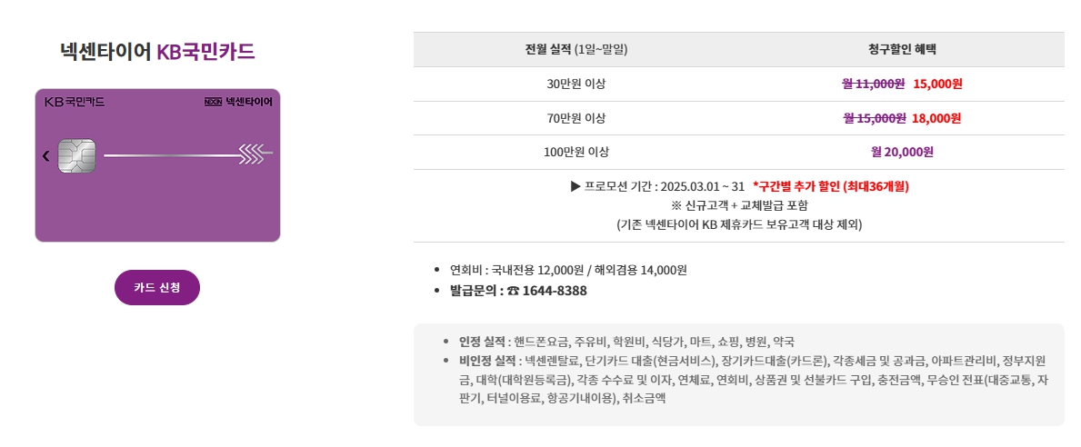 - KB국민카드: 최대 월 20,000원 할인 제공