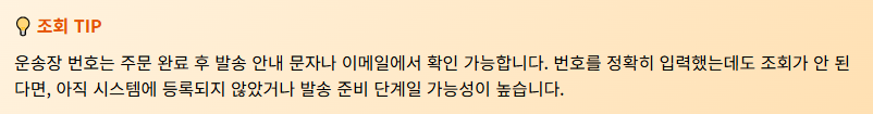 💡 TIP: 운송장 번호는 보통 주문 완료 후 발송 안내 문자나 이메일에서 확인할 수 있습니다.