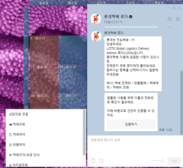 롯데택배는 자주 묻는 질문들에 대해 자동화된 답변 시스템을 운영하고 있습니다. 홈페이지 하단의 'FAQ' 섹션에서 배송 관련 문의 사항을 미리 확인해보면 빠른 해결이 가능할 수 있어요.