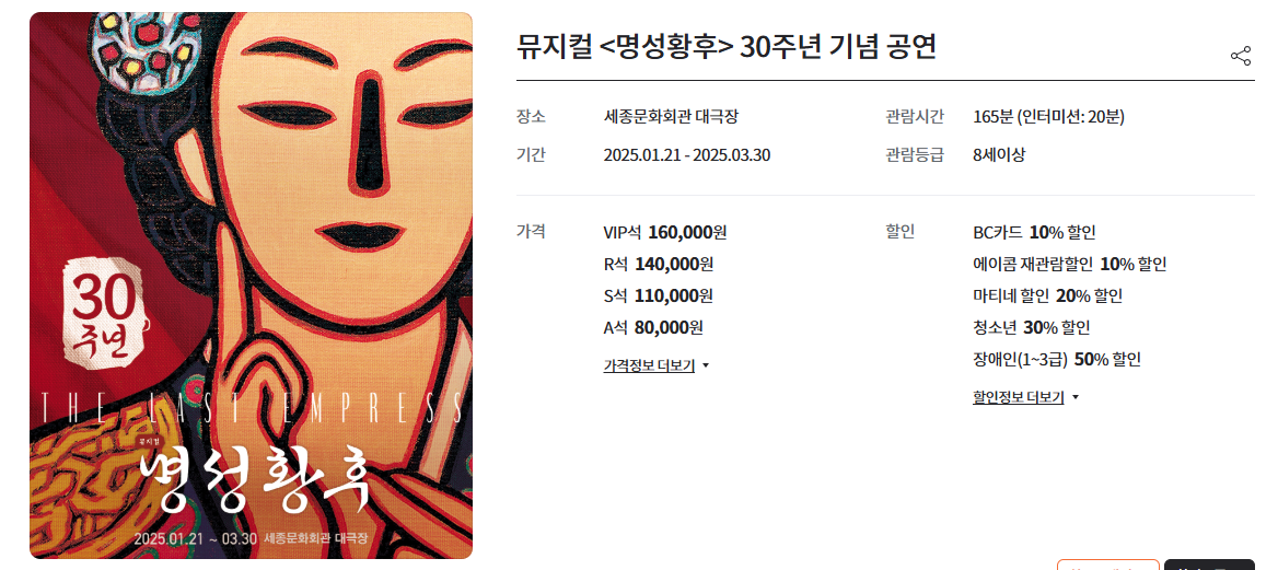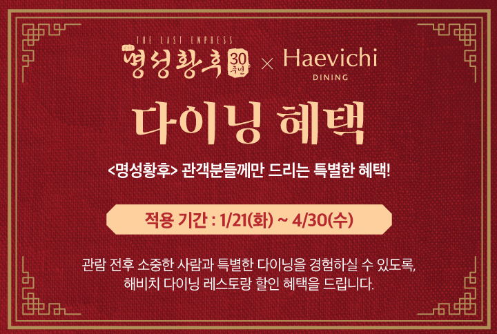 명성황후 30주년 기념공연, 다이닝 혜택 및 총정리
