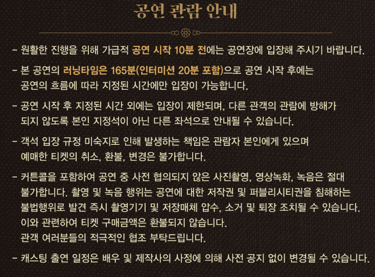 이번 공연을 통해 새로운 감동을 느끼고, 잊지 못할 추억을 만들어 보세요. 여러분의 기대와 사랑이 있기에 명성황후는 30년이 넘도록 이어질 수 있었습니다. 관람 후 소감을 나누고, 사랑하는 사람들과 함께 이 특별한 공연을 즐겨보세요!