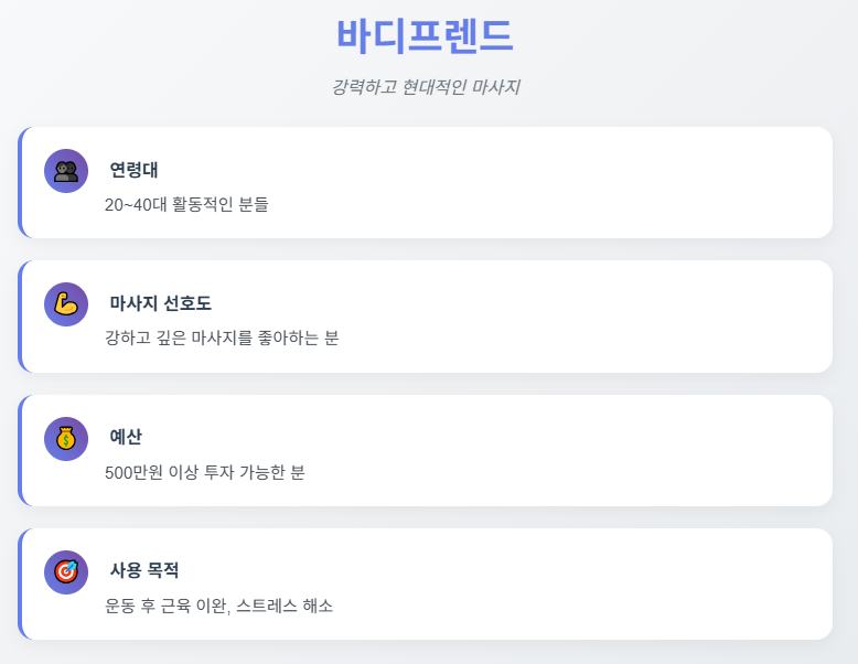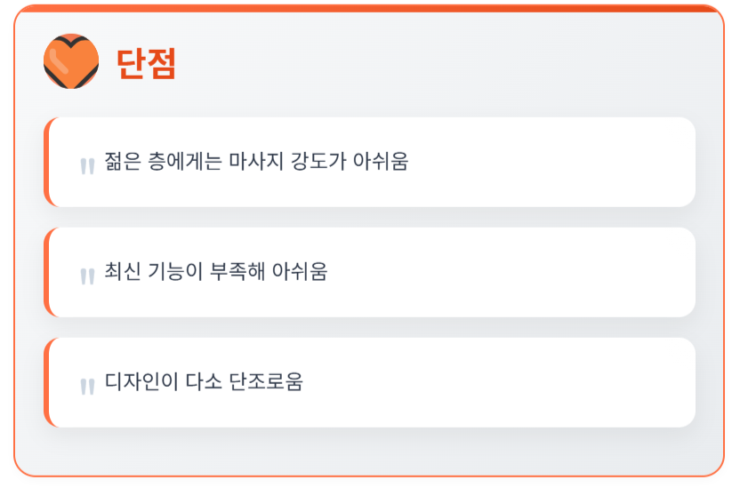 | 브랜드 철학 | 최신 기술력 중심 | 전통 안마 기법 중심 |