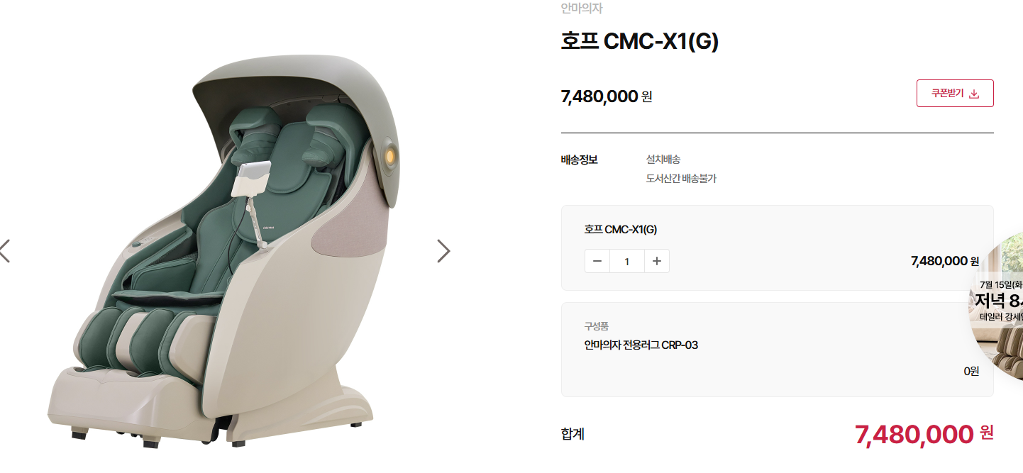코지마는 50대 이상의 연령층이나 온 가족이 함께 사용하기에 적합한 마사지 의자입니다.