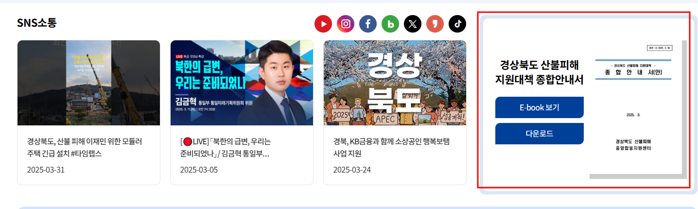 경상북도 도청 홈페이지 메인 화면 하단에 보시면 PDF 내용으로 확인할 수 있습니다.