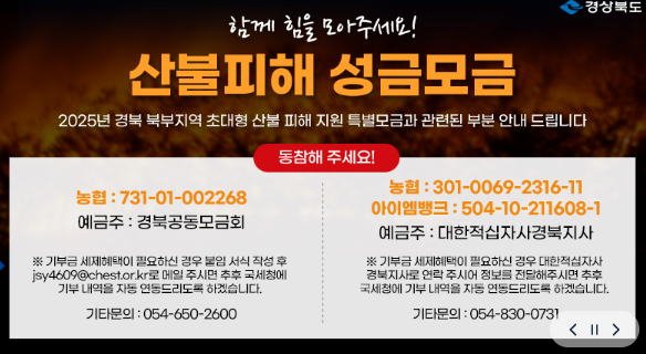 이에 따라 경상북도와 중앙정부는 산불 피해자들을 위한 다양한 재난지원금을 지원하고 있습니다.
