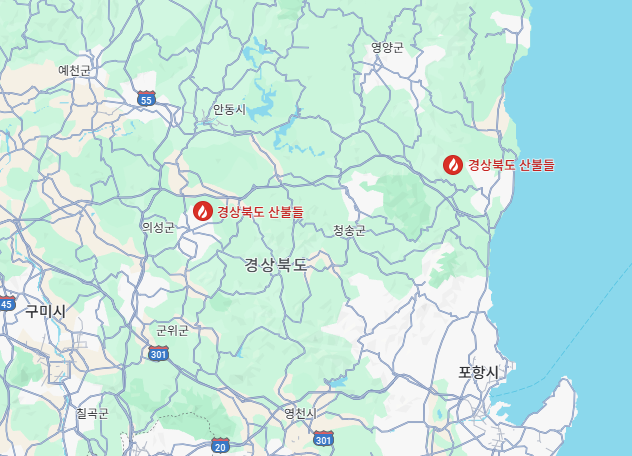 의성에서는 산림 수백 헥타르가 소실되었으며, 마을 일부가 전소되기도 했습니다.