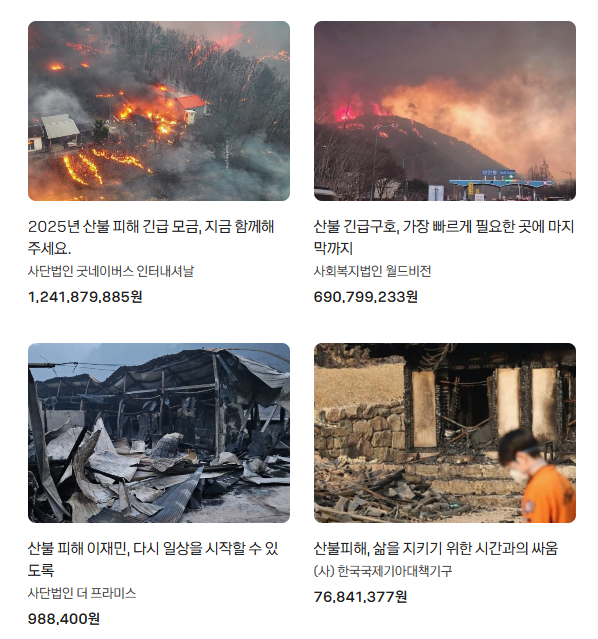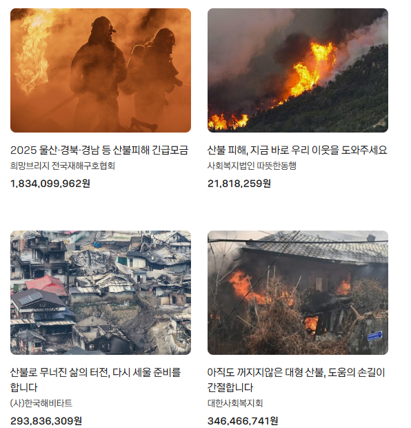 긴급 모금은 3월 23일부터 시작됐고, 이재민들의 생계와 임시 거주 지원을 위해 기부금이 투입되고 있죠.