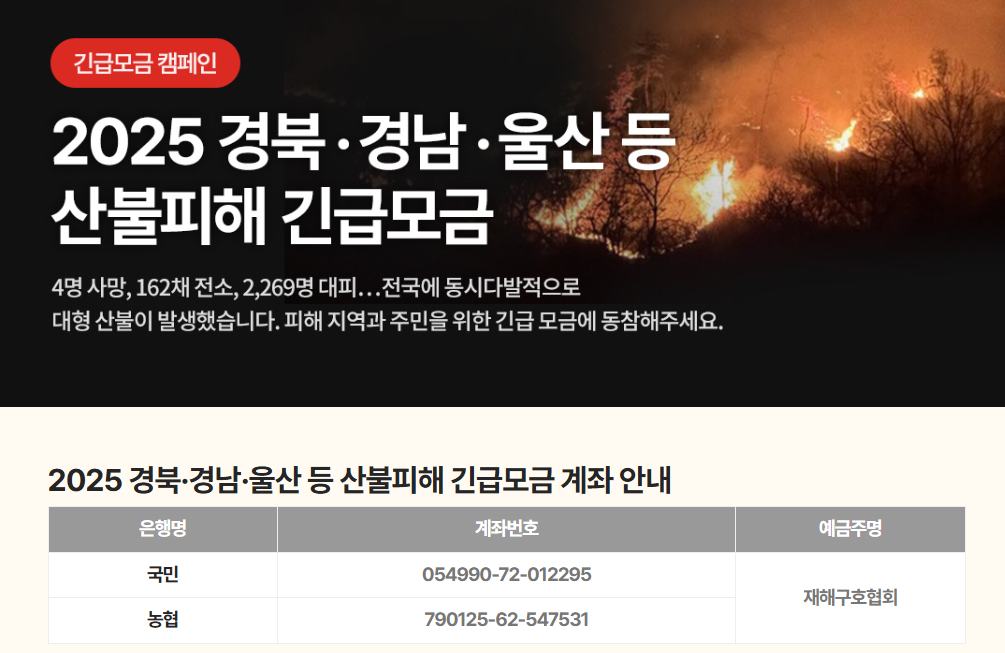 희망브리지는 재난이 발생하면 가장 먼저 떠오르는 곳이에요. 이번 산불도 예외는 아니었습니다.