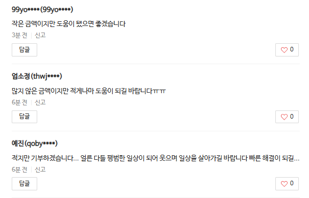 무엇보다 참여 방법이 너무나 간단해서, 많은 분들이 댓글 하나로 기부에 참여할 수 있었어요.