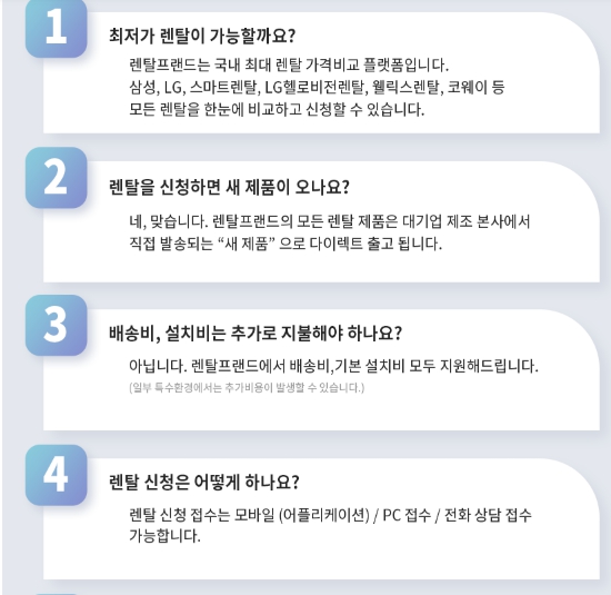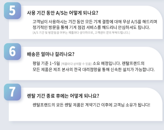 | 계약 종료 후 다양한 옵션 | 반납, 재렌탈, 소유권 이전 중 선택 가능. |