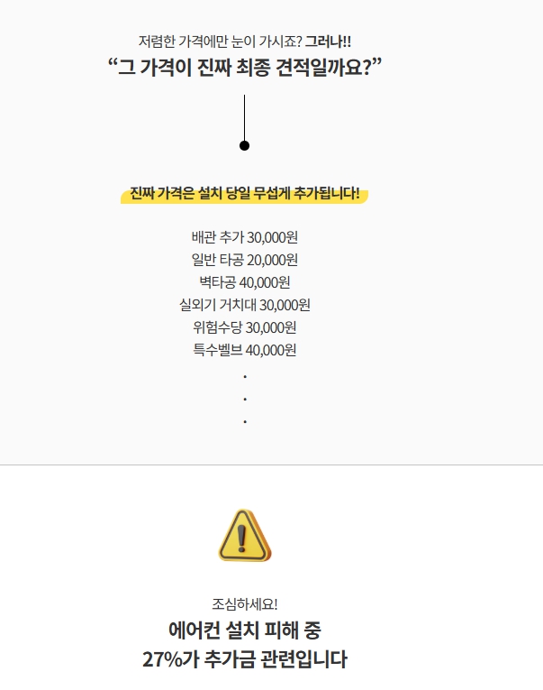 ※ 주의! 에어컨 설치 피해 중 27%가 당일 추가금 때문이라고 해요.