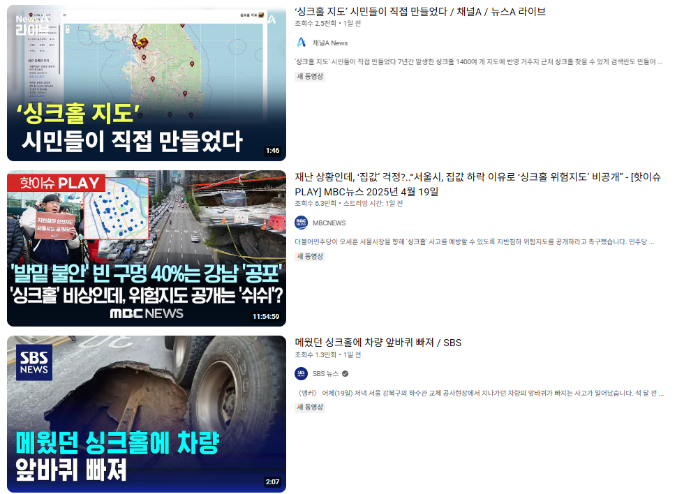 최근 국내에서 싱크홀 사고가 너무 빈번하게 일어나서 걱정입니다..