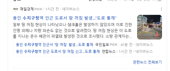 2025년 4월 21일 저녁, 용인 수지구 수지구청역 인근 도로에서 싱크홀(땅 꺼짐) 현상이 발생했습니다. 도로에서 연기가 나는 장면까지 포착되며 시민들은 큰 불안에 휩싸였지만, 다행히 인명 피해나 차량 손상은 없었습니다.