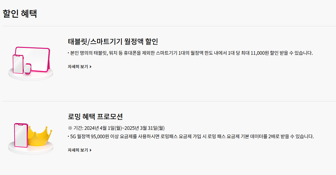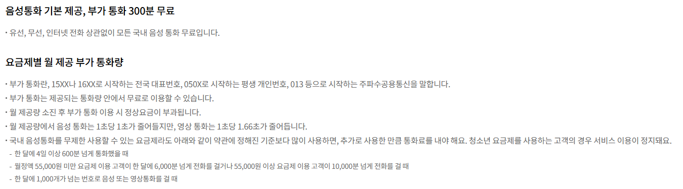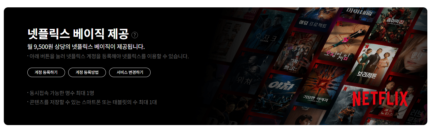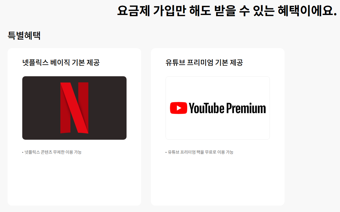 | 넷플릭스 & 유튜브 프리미엄 | 추가 요금 없이 무료 제공 |