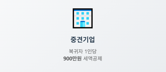 - 중견기업: 복귀자 1인당 900만원 세액공제