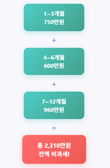 - 7~12개월: 월 160만원 (상한 적용) → 비과세