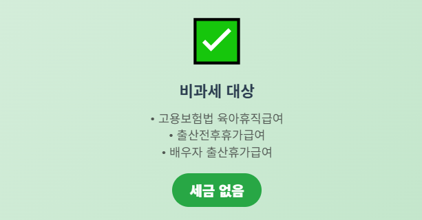 - 고용보험법에 따른 육아휴직급여 → 비과세 ✅