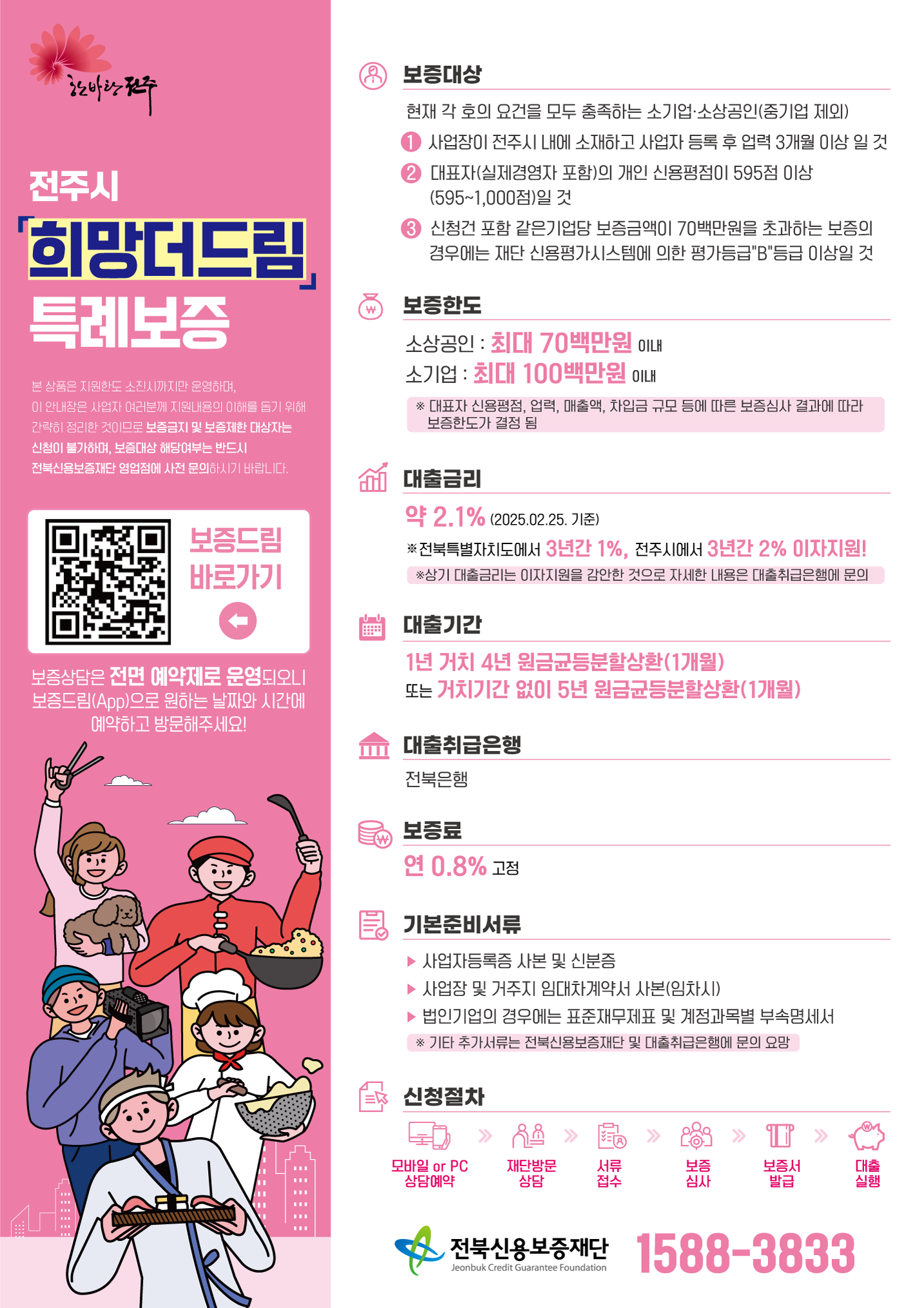 ‘희망더드림 특례보증’은 전주시가 직접 지원하는 소상공인·소기업 대상 특별 금융지원 제도예요.