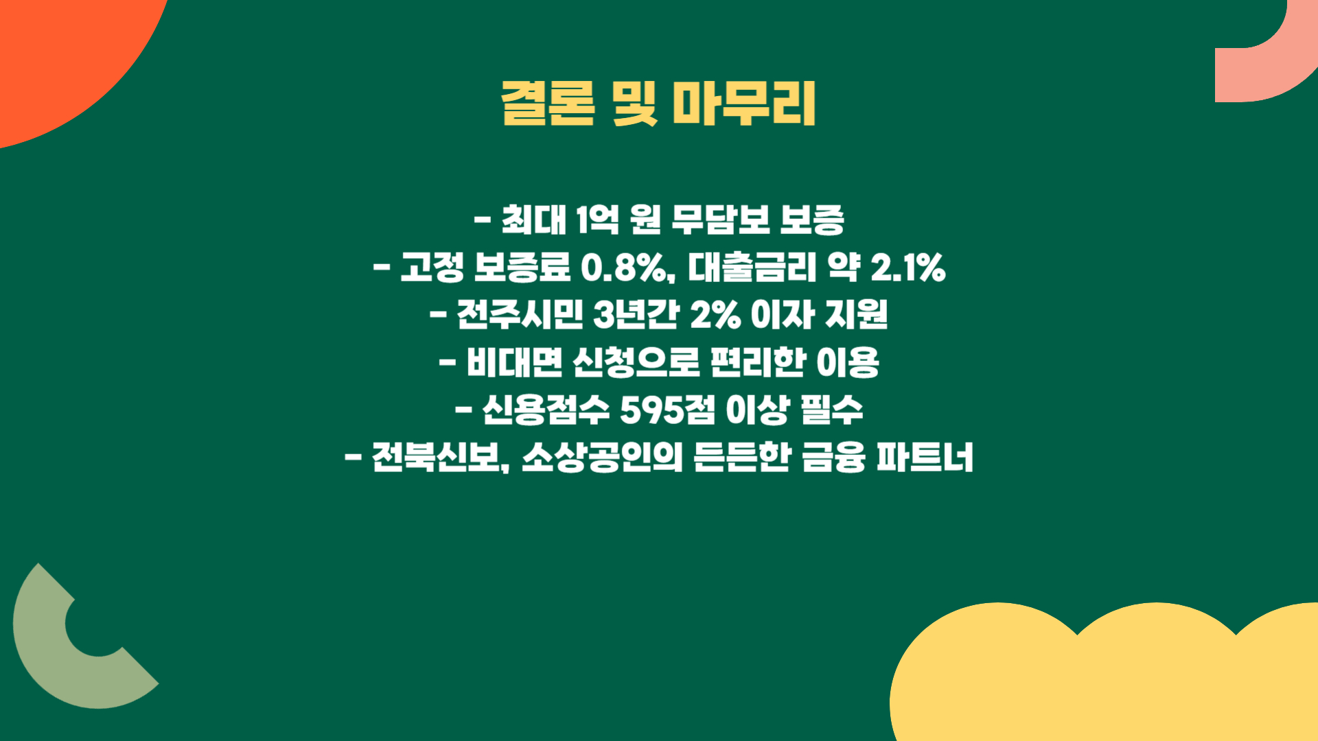 보증이 승인된 후 전북은행에서 대출이 실행되며, 금리는 약 2.1% 수준이에요. 전주시 거주자는 이자 지원도 받을 수 있어요.