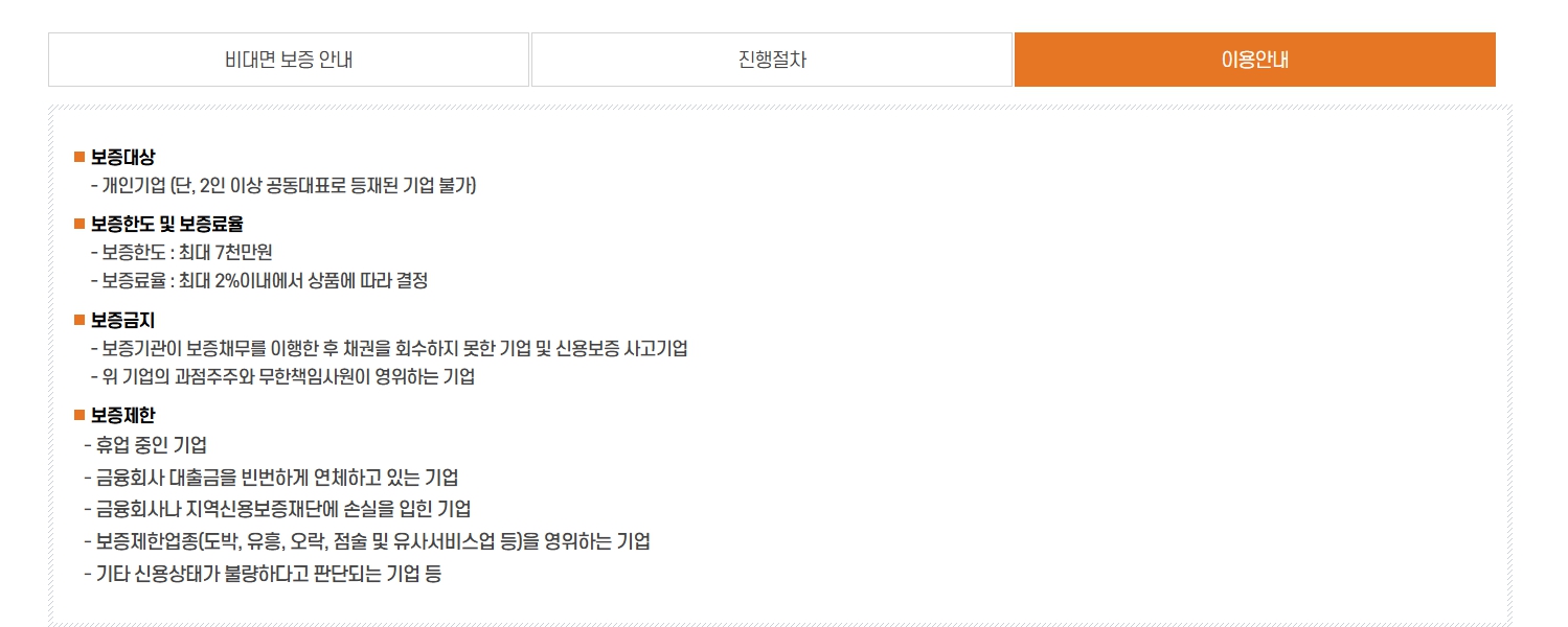 | 보증한도 | 소상공인 7천만 원 / 소기업 1억 원 이내 |