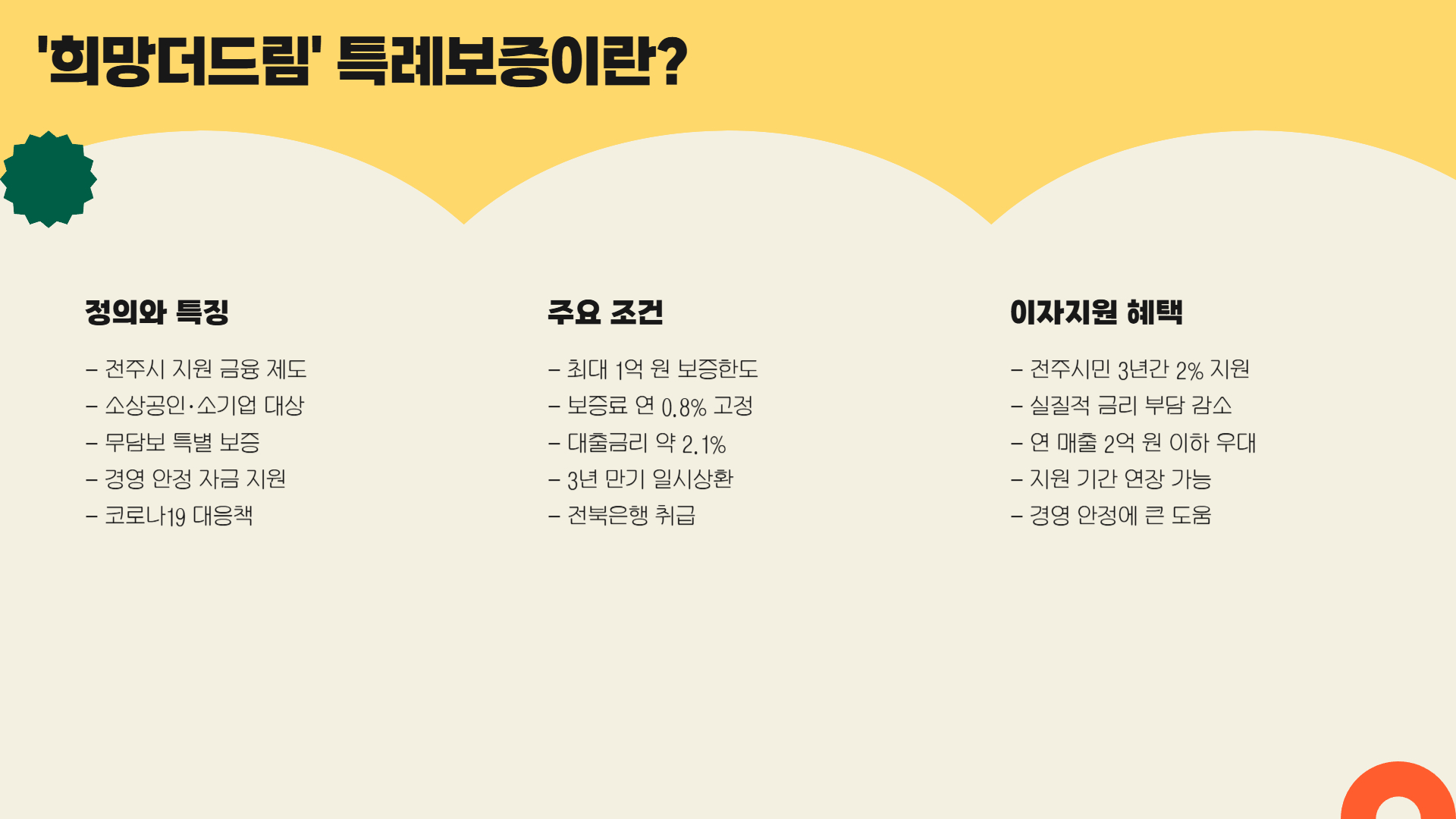 안녕하세요! 오늘은 전북 전주시에서 소상공인을 위해 진행 중인 특례보증 제도, ‘희망더드림 특례보증’에 대해 알아보려 해요.