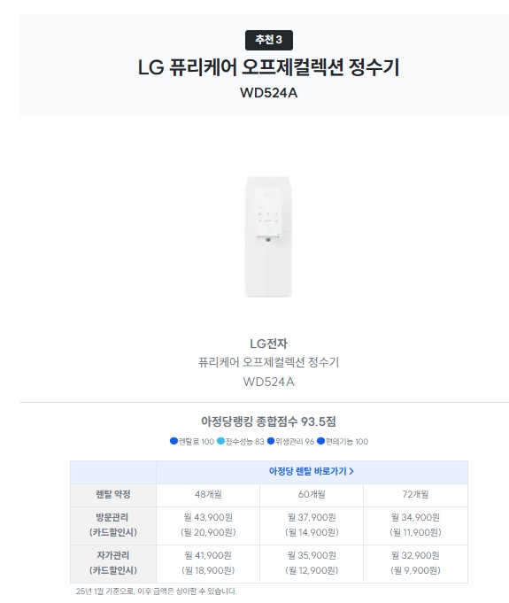 | LG 오브제컬렉션 | 월 41,900원 (자가관리) | IoT 음성인식 + 2중 살균 |