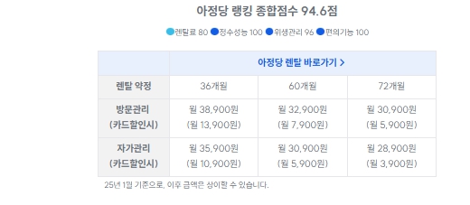 | 제품명 | 렌탈료 (36개월 기준) | 특징 |