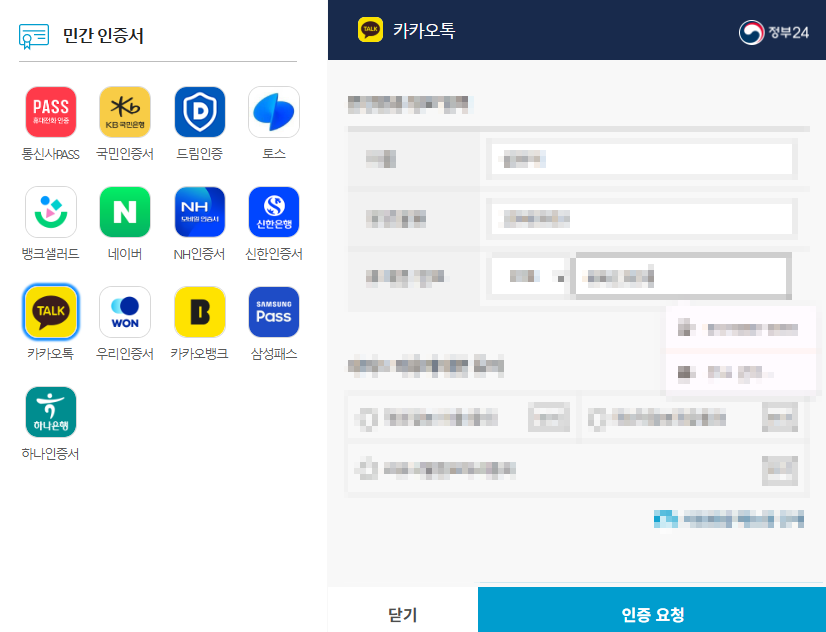 2단계: 공동인증서 또는 민간인증서로 로그인