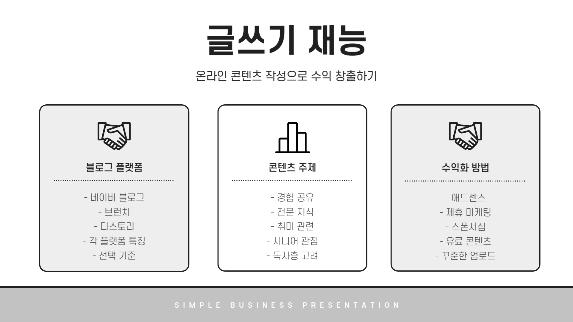 예를 들어, '퇴직 후 창업 노하우', '50대의 건강관리법', '중장년층의 스마트폰 활용법' 같은 주제는 정말 많은 분들이 찾고 있답니다.