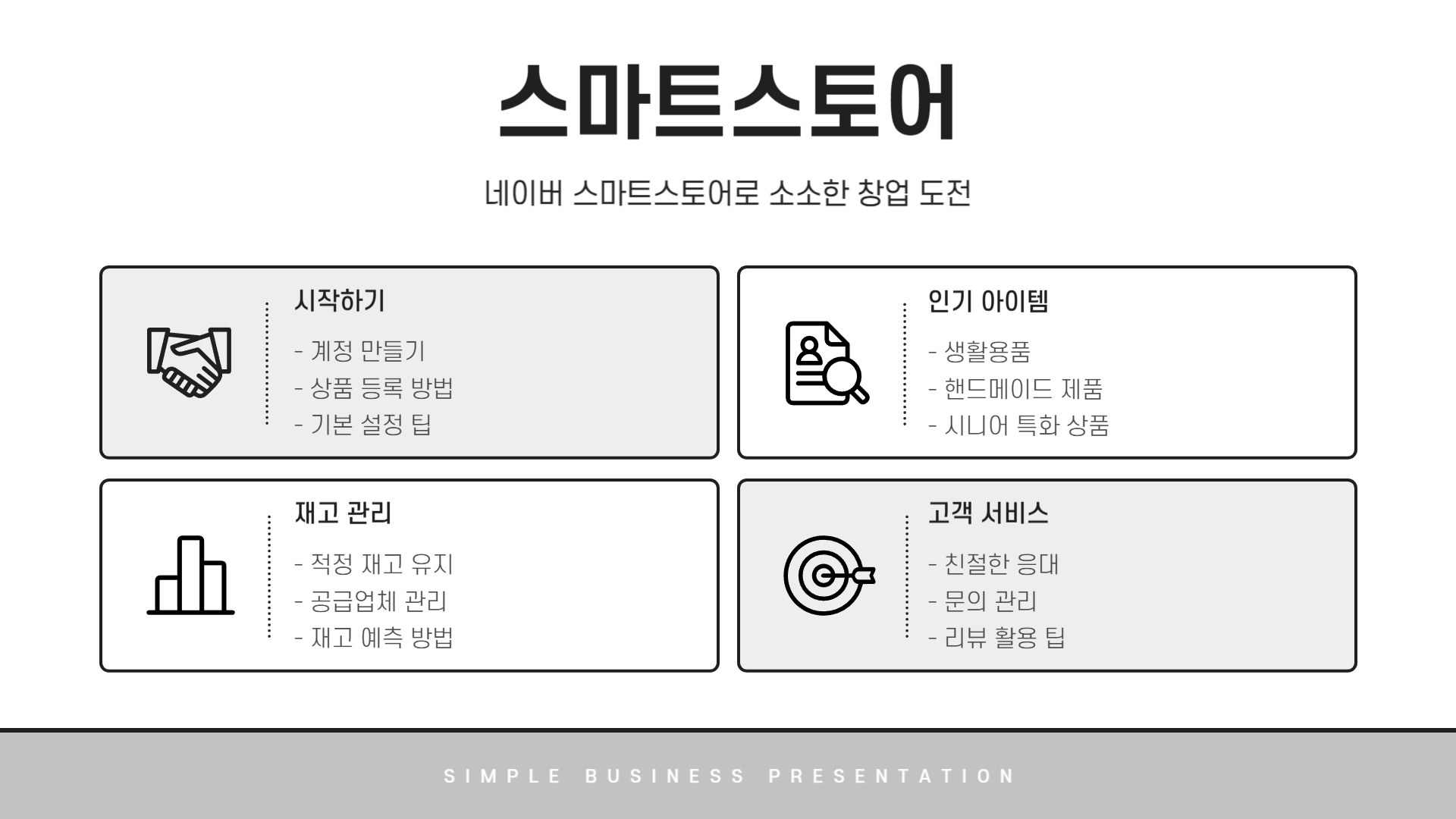 특히 네이버 스마트스토어는 1인 창업에 최적화되어 있어서 50~60대 분들도 쉽게 도전할 수 있어요.