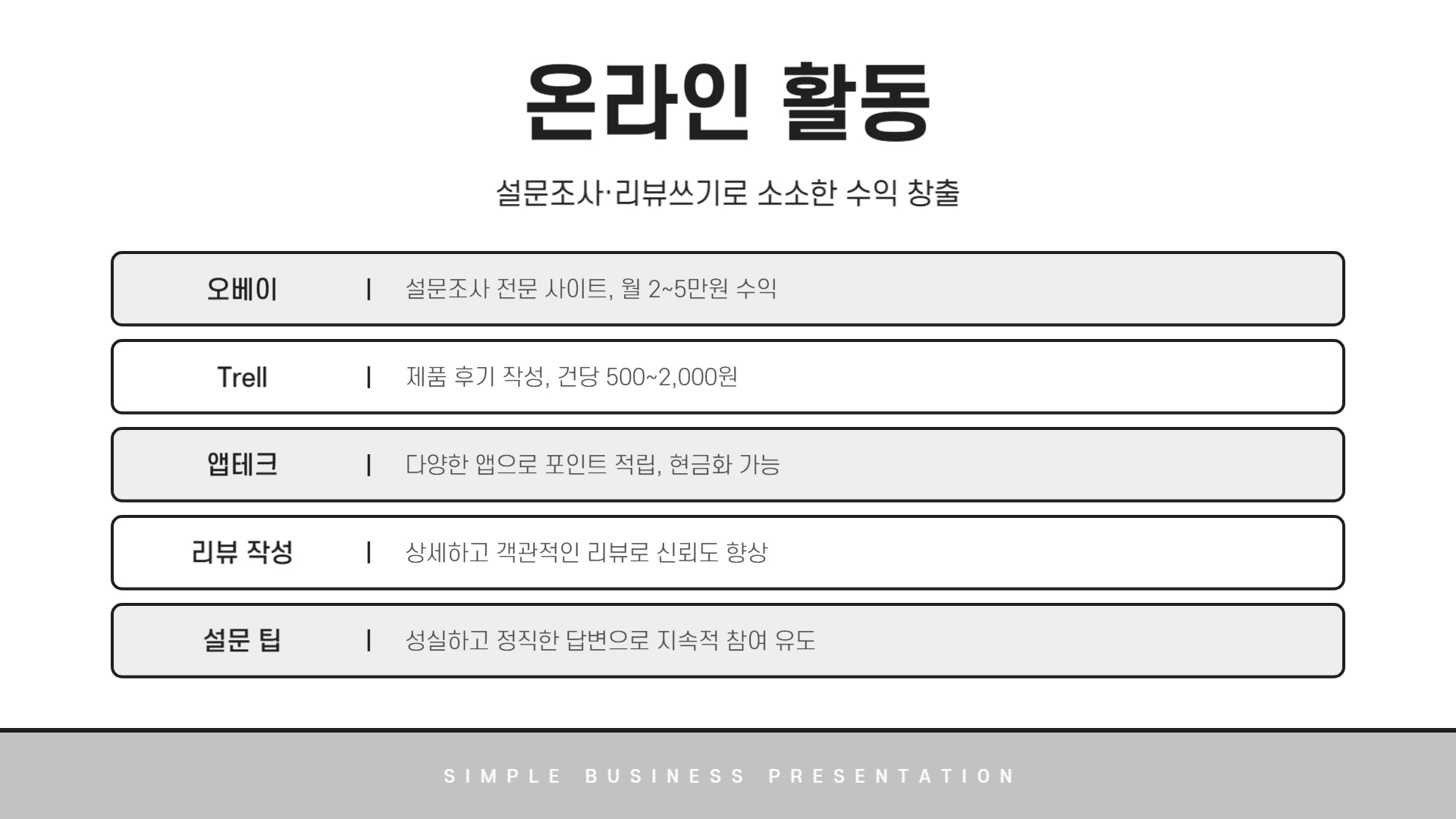 설문조사·리뷰쓰기 같은 소소한 온라인 활동