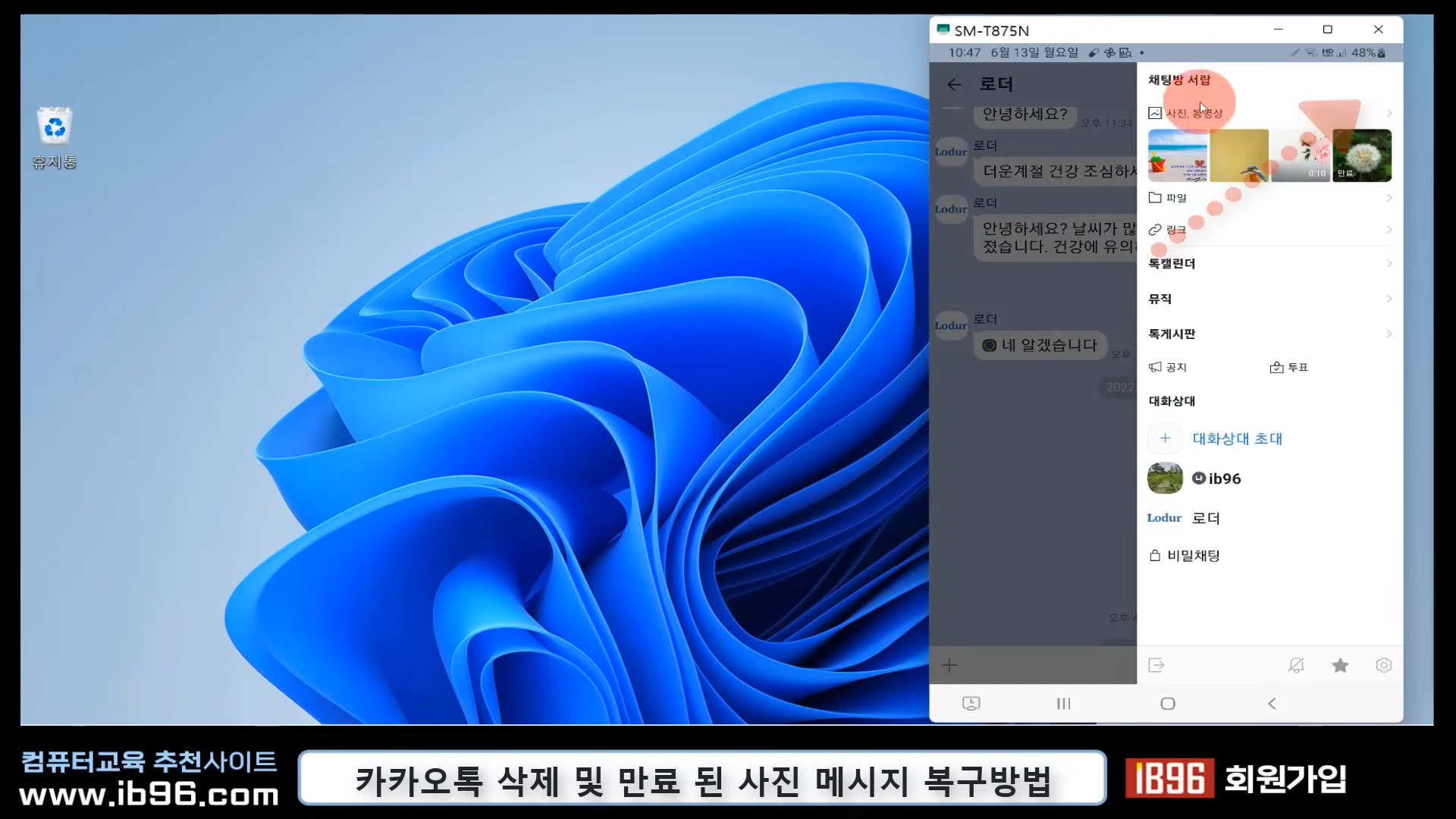 카카오톡 서랍 기능을 이용하면 일부 사진을 찾을 수 있습니다. 하지만 이미 서버에서 삭제된 경우에는 PC를 통한 복구 프로그램을 사용해야 합니다.