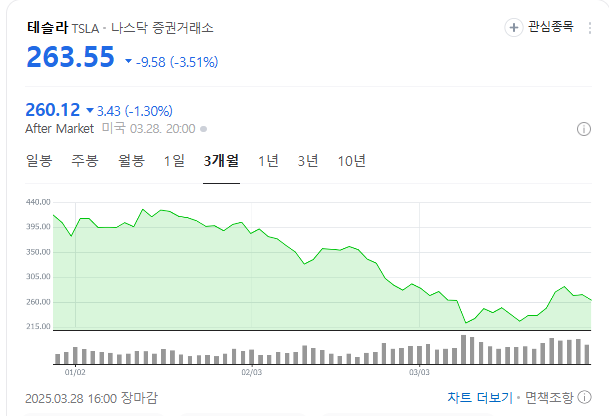 이 관세 발표 이후 가장 주목받은 종목은 단연 테슬라입니다.
