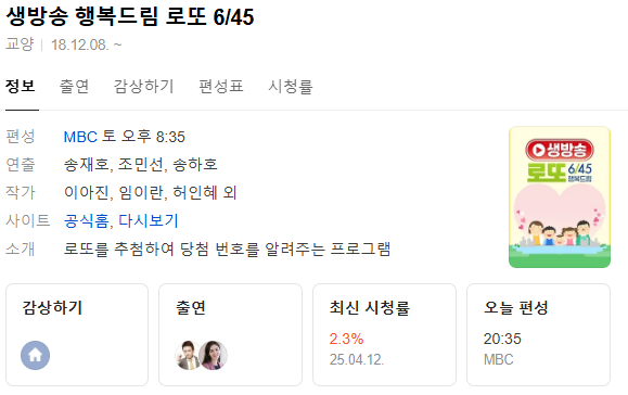 🎥 로또 추첨 생방송 시간