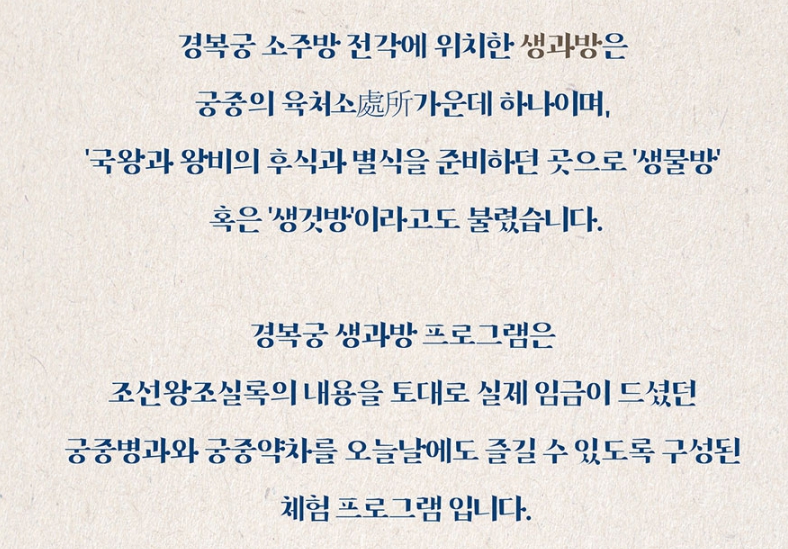 - 위치: 서울 종로구 세종로 1-91, 경복궁 생과방