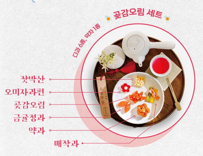 | 곶감오림 세트 | 곶감오림, 약과, 금귤정과, 잣박산 등 + 약차 1종 |