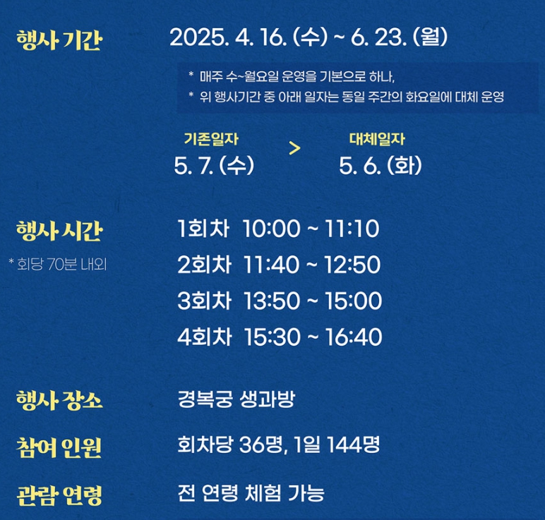 | 운영 기간 | 2025년 4월 16일(수) ~ 6월 23일(월) |