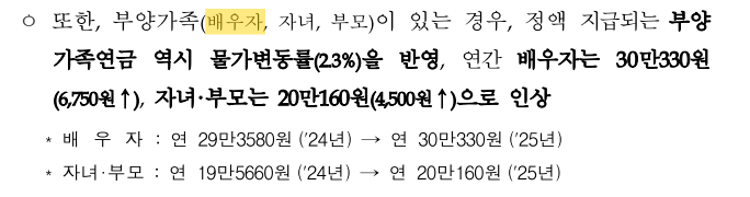 | 배우자 부양가족연금 | 293,580원 | 300,330원 | 6,750원 |