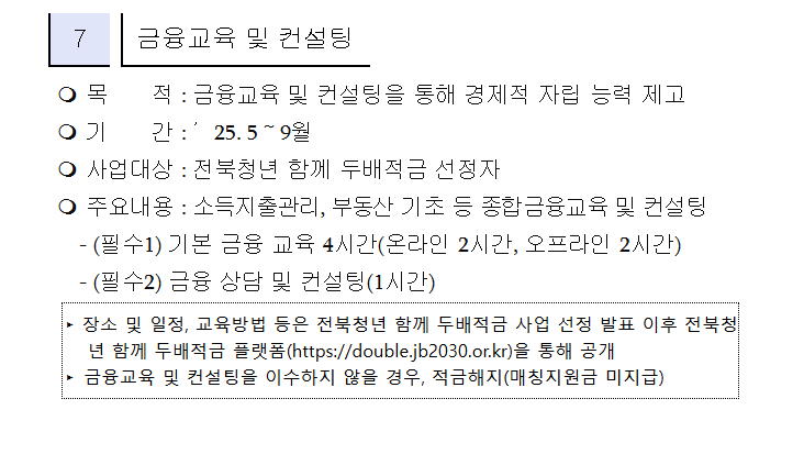 이 사업, 적금만 잘 넣는다고 끝이 아니에요. 금융교육과 컨설팅 이수가 필수 조건입니다.