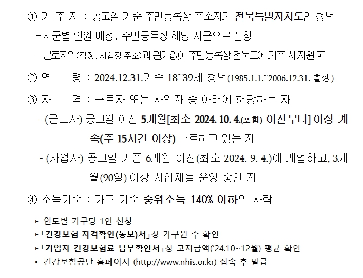 그리고 공고일 기준 주소지가 전북이어야 해요. 직장은 전북이 아니어도 상관없고요.