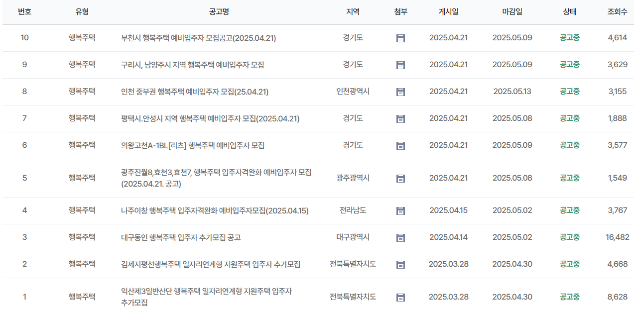 📢 2025년 행복주택 예비입주자 모집 현황