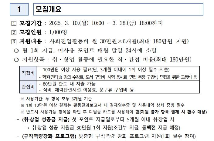 | 월 지원금 | 30만 원 / 최대 6개월간 총 180만 원 |