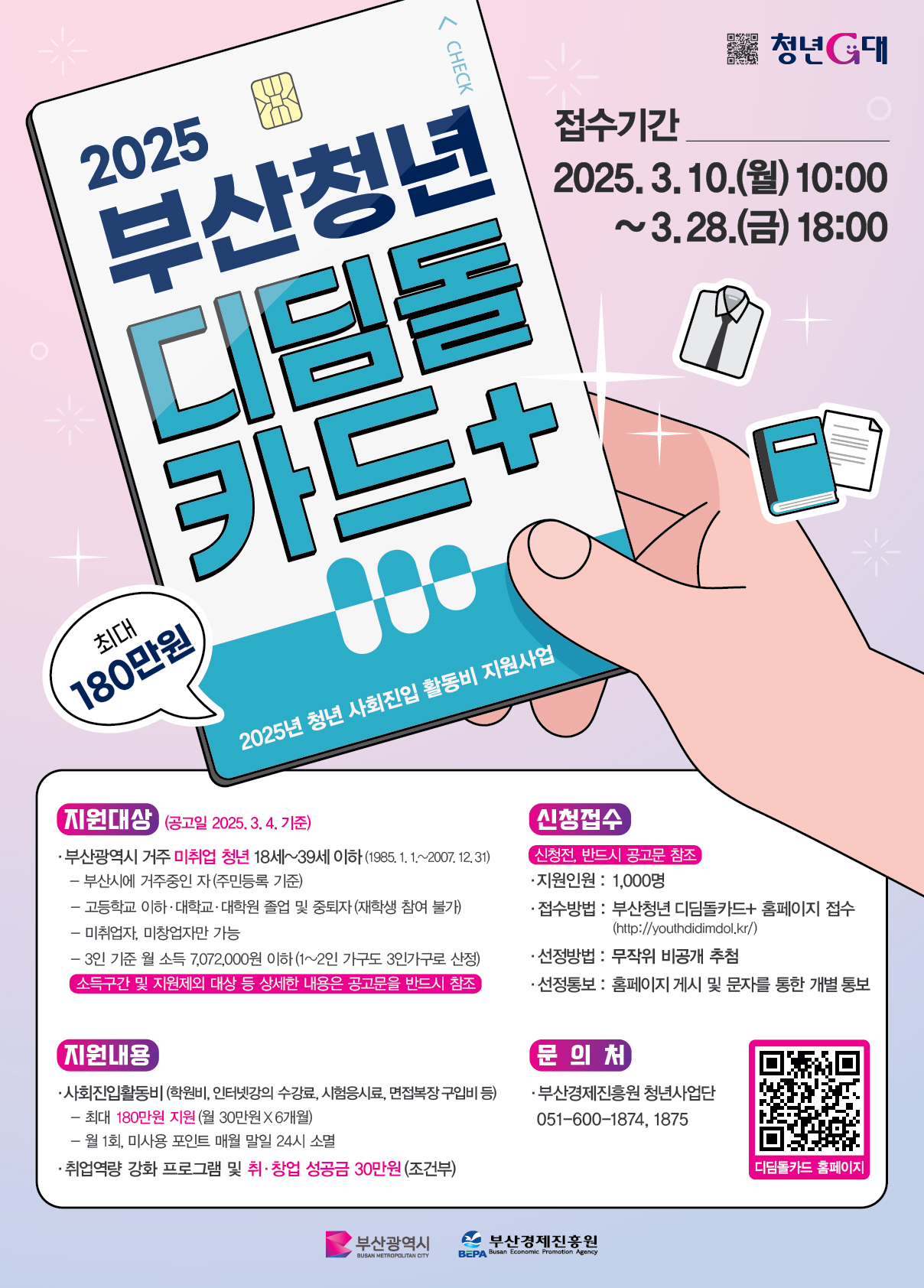 2025 부산 청년 디딤돌카드는 만 18세~39세의 부산 거주 미취업 청년을 위한 정책입니다.