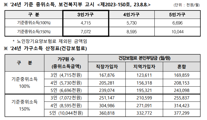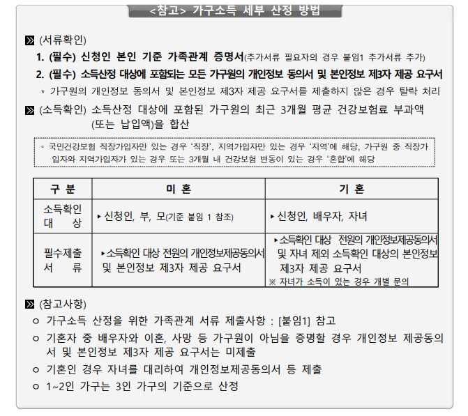 ✔ 가구 소득 중위소득 150% 이하 (3인 가구 기준 약 707만원)