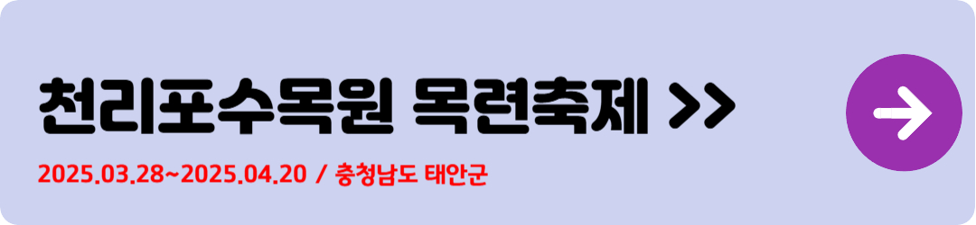 카테고리 없음 전국 벚꽃 축제 일정 (+꽃 축제) by 할혜모 2025. 3. 18. 목차 반응형 1. 진해군항제 2. 골체오름 벚꽃축제 3. 화담숲 봄 수선화 축제 4. 천리포수목원 목련축제 5. 대청호 벚꽃 축제 6. 화개장터 벚꽃축제 7. 구례300리 벚꽃축제 8. 웨이뷰 유채꽃 축제 9. 휴애리 유채꽃 축제 반응형 공유하기 게시글 관리 할인혜택의 모든 것 저작자표시 비영리 변경금지 (새창열림)